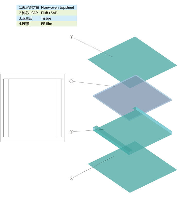 The fluff core structure adopts fully ventilation type, and electrostatic process.