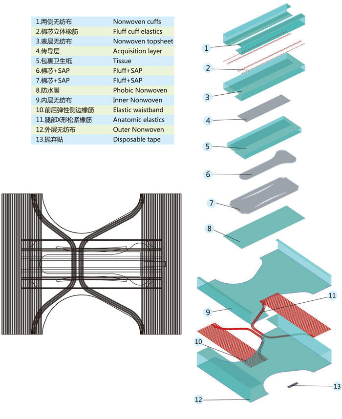 Speed range350 - 500 PPMhe fluff core is an upper and lower double core structure, compatible production of ultra-thin composite core and semi composite core.Adopt independent single elastic tension control, leg elastic can be X-type.Leg elastic bonding is using ultrasonic bonding technology.Product…
